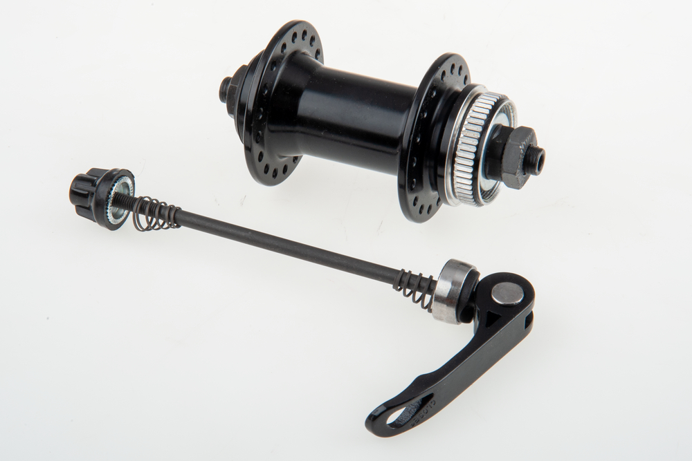 Nabe Laufrad vorne, Aluminium schwarz für Schnellspannbefestigung, Center Lock Aufnahme,